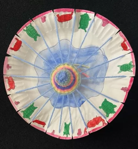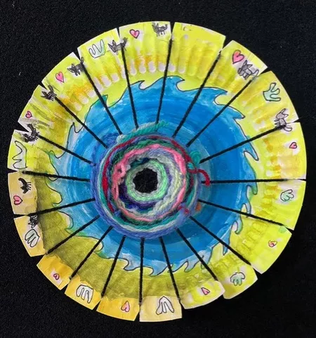 Year 3 students have been inspired by the weaving works of Ngarrindjeri artist Yvonne Koolmatrie who makes both customary utilitarian objects, such as the Eel traps, as well as figurative contemporary sculptures such as fish, turtles, lizards, echidnas, and even a biplane and hot-air balloon. The material for Koolmatrie's weavings grows along the banks of the Murray River. She harvests the materials in a sustainable way by removing the plants one by one; she also knows when and where to find the plants and acknowledges the rhythm of the seasons and life of the river.