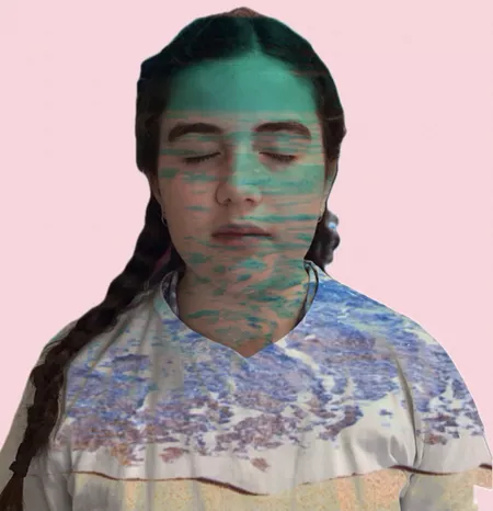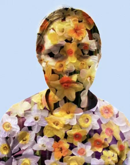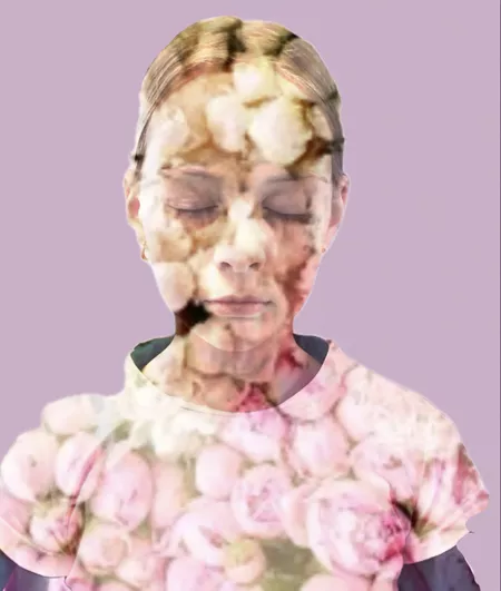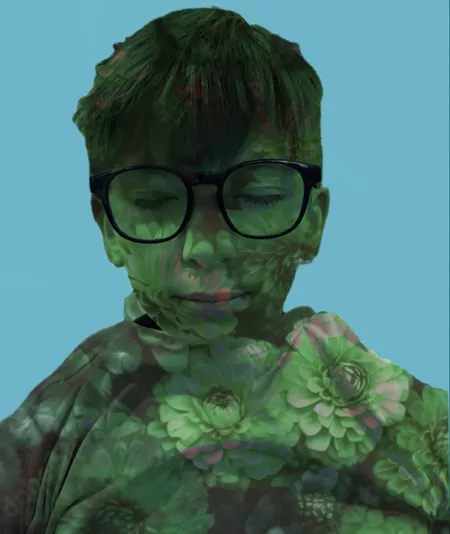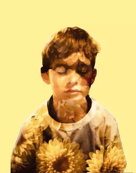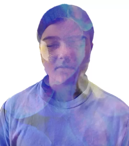 Students wore lightly coloured t-shirts over their uniform to provide a clear canvas for the photograph in which they posed for their photo with their eyes closed and a calm expression. Students found images of things personal to them; birthstones, birth flowers or cultural flags to overlay their image with.