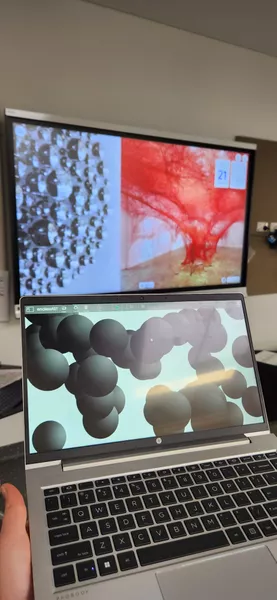 Connecting back to Absence Embodied and Dark matter collective allowed students to consider art-making with virtual simulations of materials using digital tools – like using digital strands of wool and geometric pattern making with light. Using the digital tool, students created artworks that were the product of ideas they had developed through experimentation and planning, made choices about how to use visual art conventions, and used a range of digital block coding and techniques that best communicated their intentions.