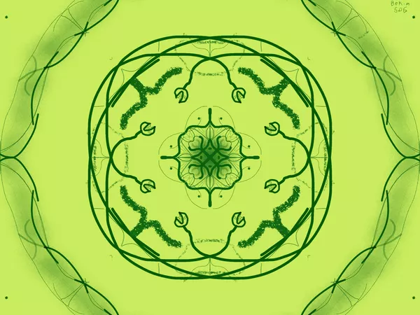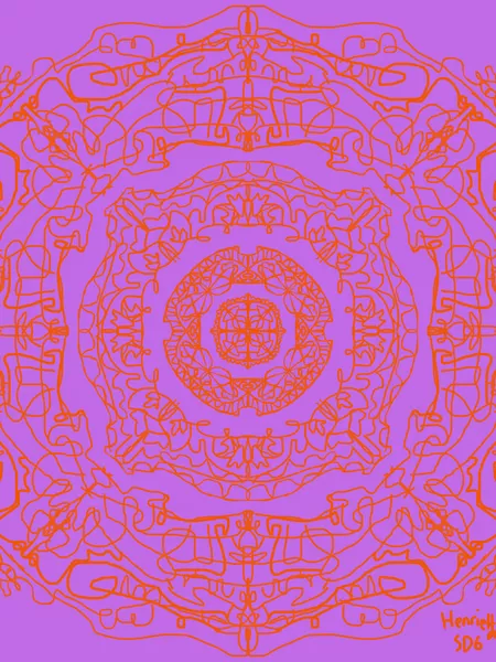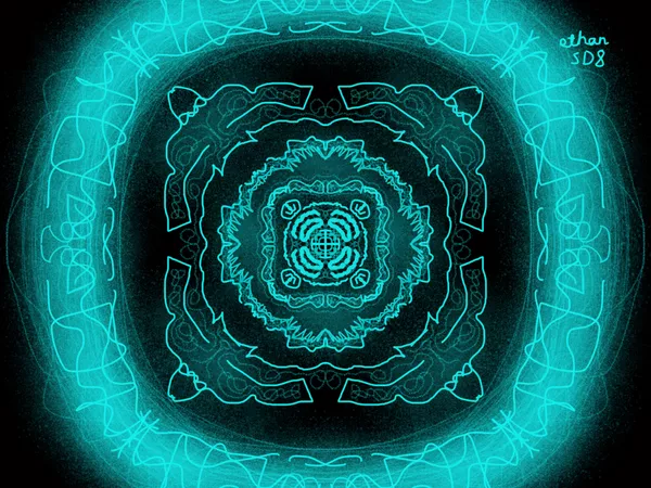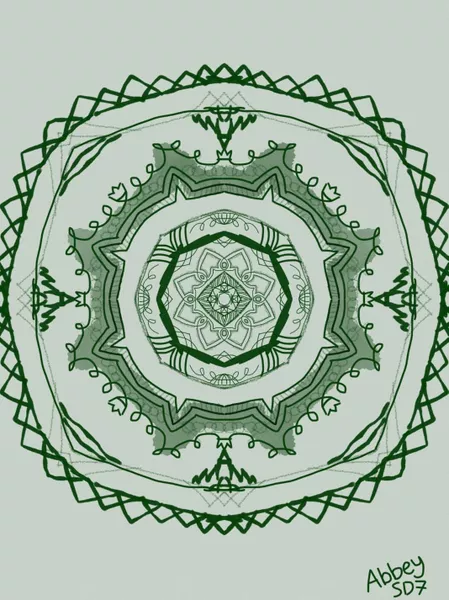 Students then created their own layered patterned chandelier design - but they also changed their perspective and created designs as though they were standing beneath it, looking up. Students used ipads and the app "Sketches" to create their digital chandelier by first reflecting back to previous years work on patterns and mark making that were significant to their family and homes. Using the different digital drawing tools they recreated parts of the same patterns and marks in multiple, symmetrical digital layers.