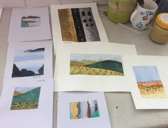 Students were guided through a series of watercolour and gouache painting exercises exploring mark making in response to the work of Australian artist, Fred Williams.