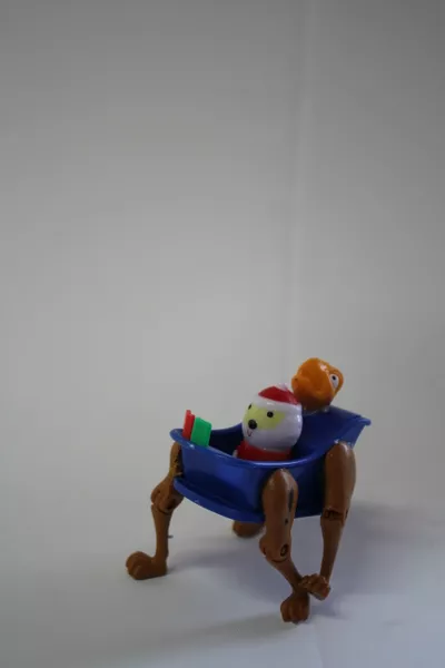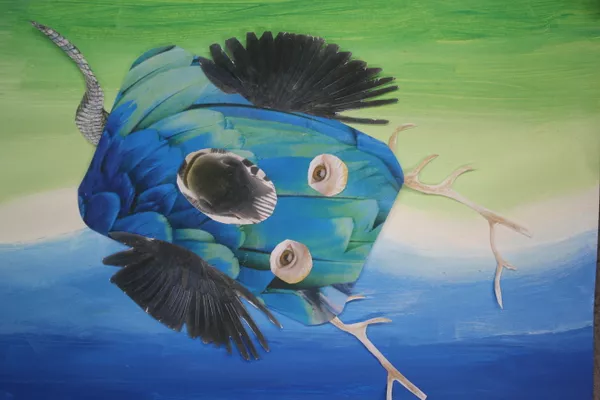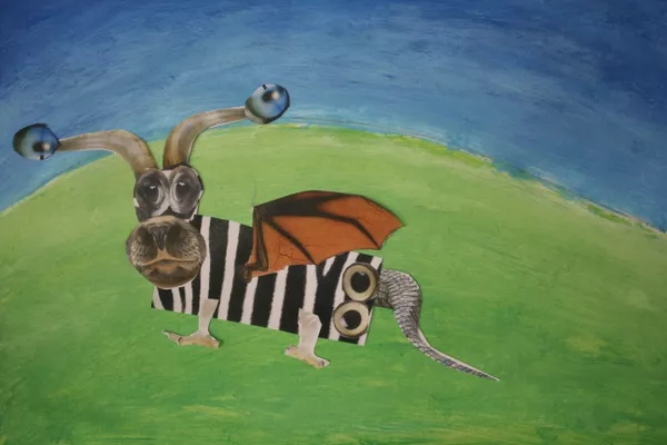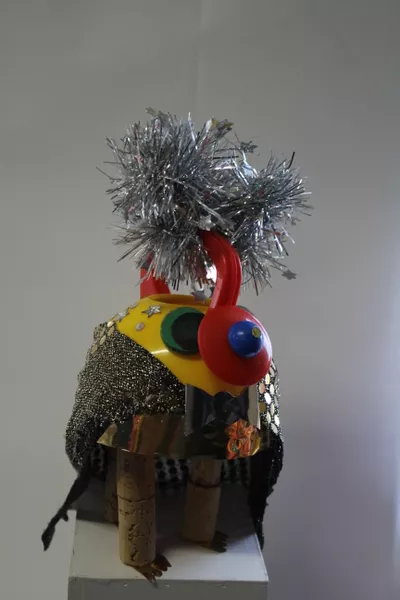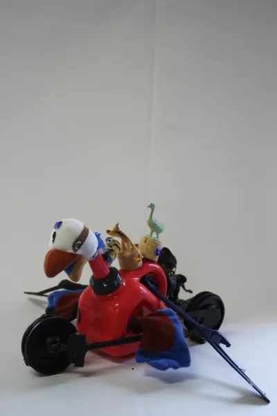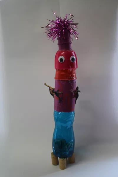 Julia Robinson is a creator of new species, splicing together a hybrid creature. Her work of art Beatrice is a chimera, an organism that is made of cells from two or more organisms. Students repurposed old toys by joining elements together to create a new hybrid.