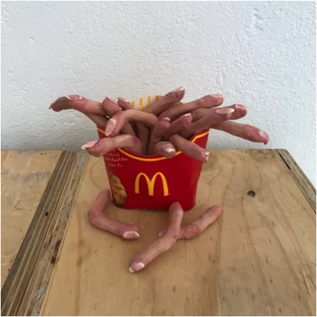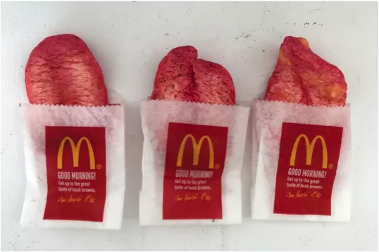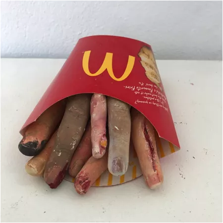 Year 11 students created a visual display that warns against the hidden dangers lurking in junk foods. Students examined how marketing influences our poor choices and were influenced by the surreal sculptural work of Patricia Piccinini. Experimenting with magic clay and water colours the students created some disturbing skin effects, with the aim of creating something disturbing and grotesque rather than beautiful and perfect.