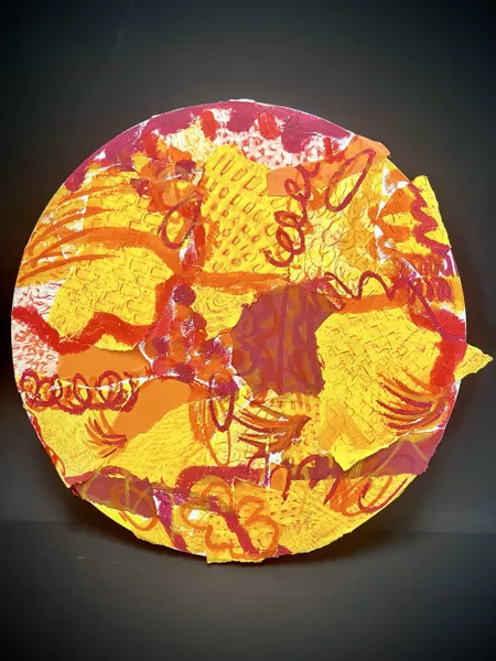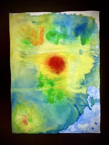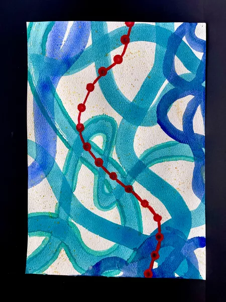 Students read through the AGSA resource describing Marawili's practice and watched the interview of her presenting her work. Students worked in groups and had the choice to respond on acrylic paint or water-soluble inks on textured rag paper. It was important for students to engage with the research aspect and link their findings to how our community is affected by the weather. Artworks were inspired by the colours, shapes, lines, and patterns found in over 150 stimulus images of the school’s location which were collectively sourced by the students. We started with satellite maps, pressure maps, topographic maps, wind atlases/synoptic charts, temperature patterns, precipitation maps, climate maps, and geologic maps. Thinking of the people during our discussions, we also drew inspiration from the campus map, evacuation maps, and our walking trails between classes. Finally, the school is next to an air base, so we also considered the importance of radar images, constellation maps, aviation maps and cloud/storm tracker
