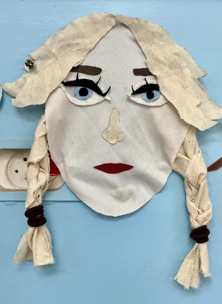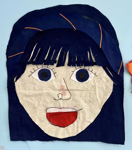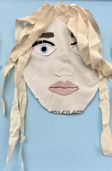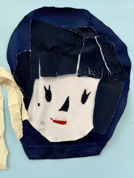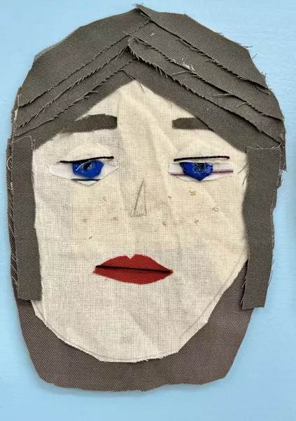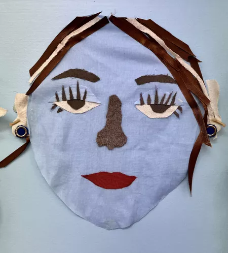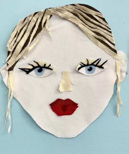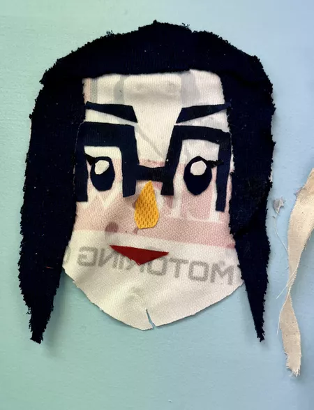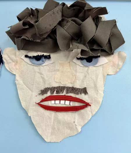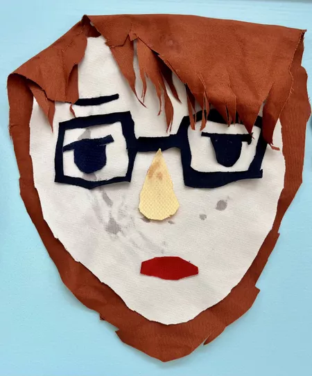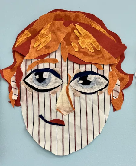 Create a self-portrait collage using soft materials such as recycled textiles, wool or thread.