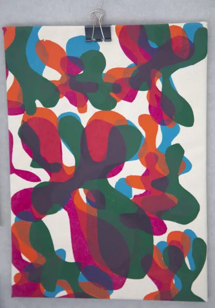 Inspired by patterns and motifs from their own heritage, students created abstracted designs using multi-layer paper stencils and silk screen printmaking. The designs were eclectic with students tracing their lineage to Scotland, Ireland, Italy, The Seychelles, Italy, Greece and the UK to name a few. Through the design process students were asked to transform recognisable imagery into pattern that were abstracted. – Harriet Geater-Johnson, Art Teacher
