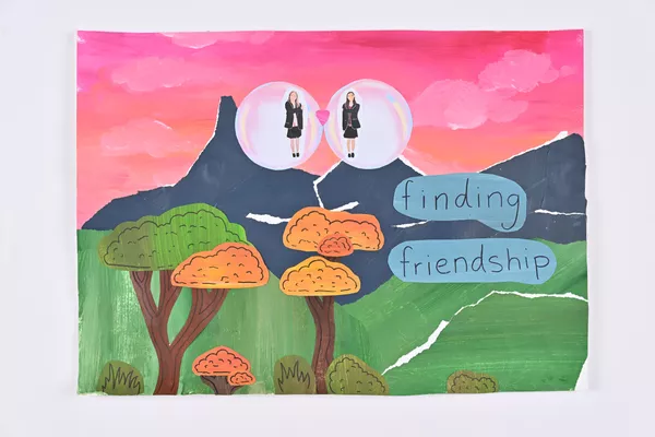 In response to Two girls, students were invited to ‘think in bright colours’ and create a stop motion animation using collage that told a real or imagined story from their lives.