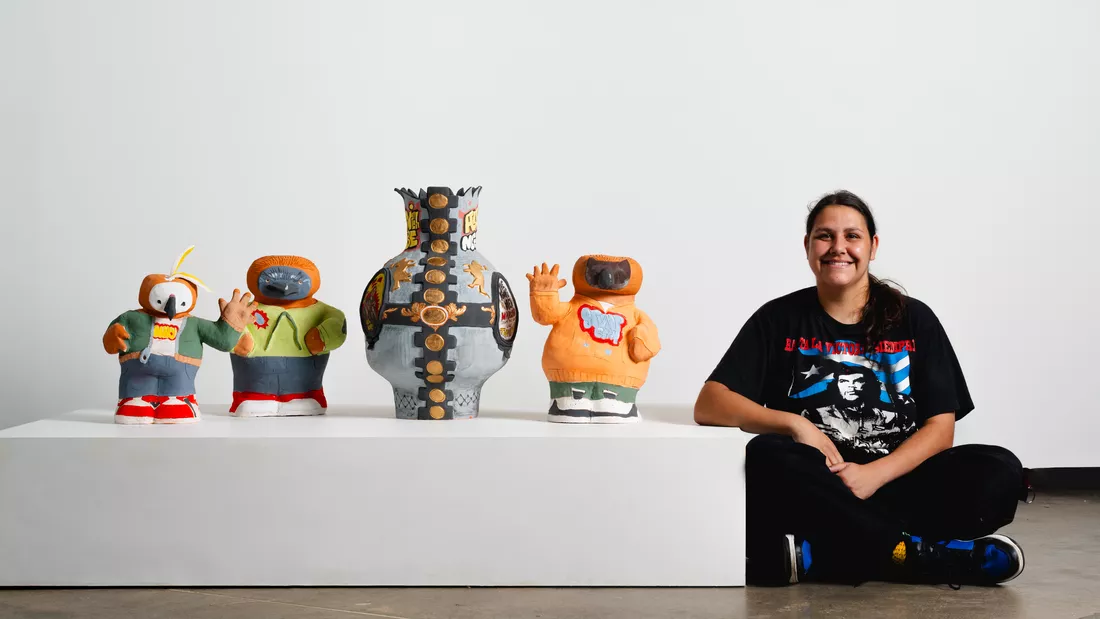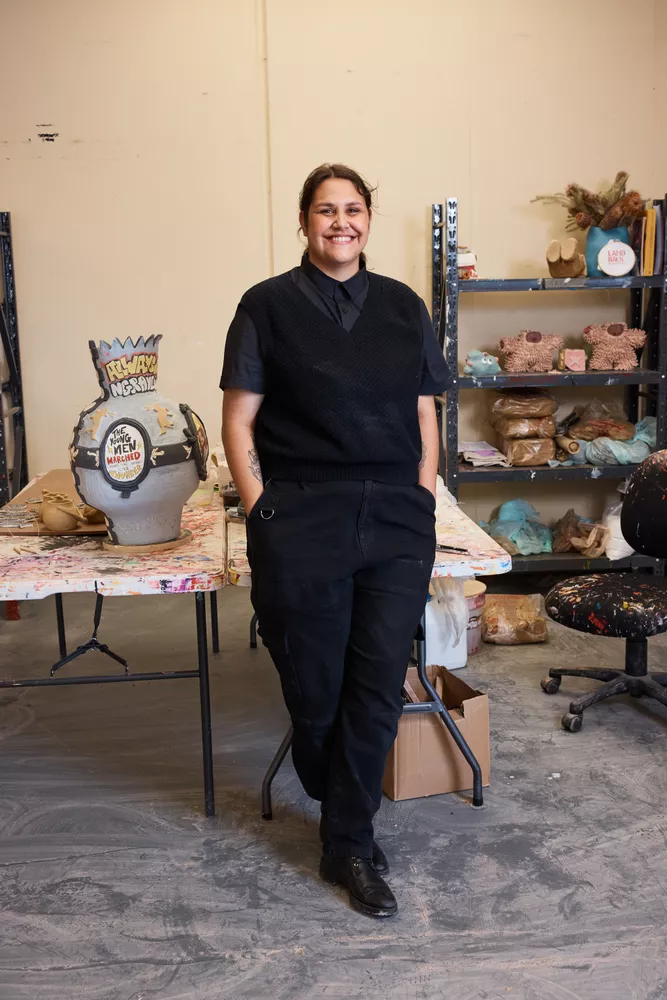 Tiarnie started working with ceramics in 2022 for the first time whilst studying at University and ceramics has become a core focus of their artwork. Their practice focuses on themes of identity, culture, history, politics, and activism and the intersectional way these fields overlap within complex and diverse identities within contemporary Australian life, particularly Aboriginal Identities. Tiarnie utilizes the universal language of visual knowledge to connect audiences to their narrative works, using humour and history to tell the stories of community and individuals. Their contemporary artworks explore the preservation of history and identities through storytelling.