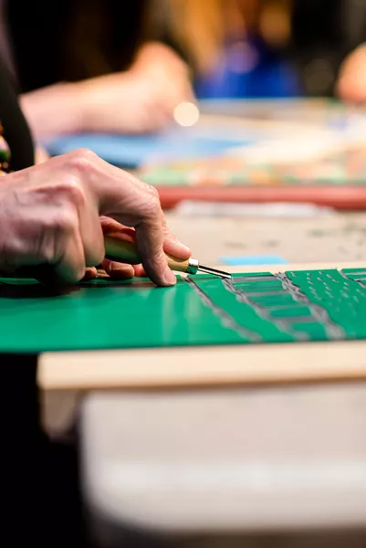 Teachers participated in a Fire Talk led by Jacob Boehme before taking part in a hands on printmaking Workshop Brian Robinson. Participants were encouraged to recall memories from their childhood that could be translated into a limo design using pattern and repetition.