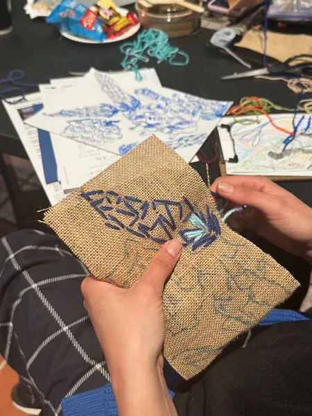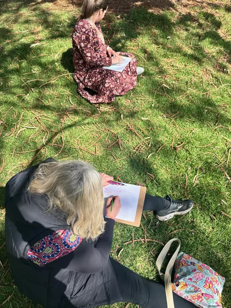 From here we ventured outside with Gamilaroi Yinarr artist Sophie Honess providing teachers time to pause, rest, reflect and respond to their natural environment, first with coloured pencil and then with thread.