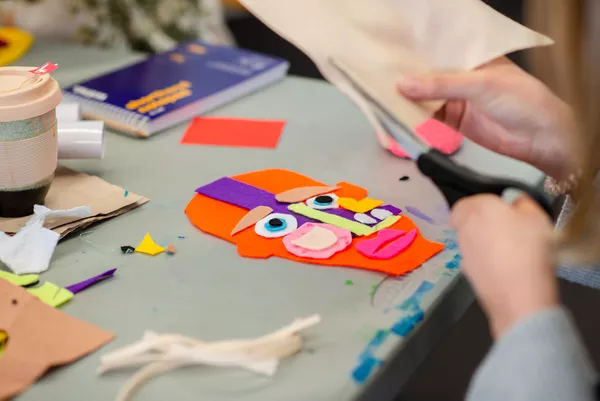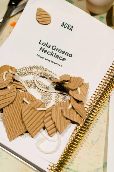 Using the 'artists as a starting point' flowchart, teachers were guided through an appropriate method for responding Lola Greeno's shell necklace. Educators considered the main themes and concepts in the artist's work and made connections between these ideas and the world of their students, resulting in a variety of potential activities that responded appropriately to Greeno's work. Using only cardboard, teachers then created a patterned neck piece or body adornment that was inspired by the place where they live.