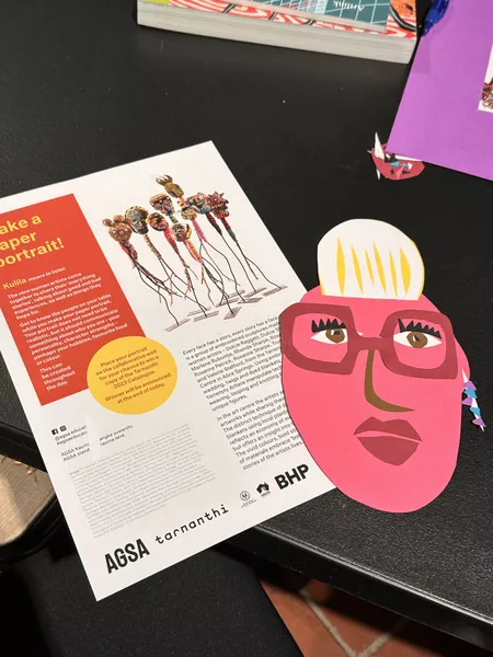 After a tour of AGSA's permanent collection and Tarnanthi teachers took part in a hands-on and strategies-based session where they used our 'using artists as a starting point' flowchart to respond the work of Bidjara artist Christian Thomson. Participants created their own wearable work of art inspired by a flower or plant that represented who they are.