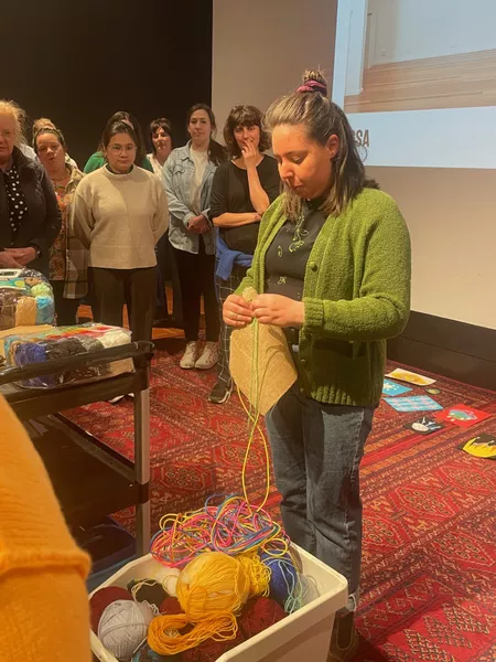 Finally teachers heard from artist and performer, Adrianne Semmens. Here they were introduced to ways to incorporate movement into the classroom with simple mapping activities using string and butchers paper. Each teacher used a different piece of wool to trace their journey from their home to AGSA. A simple task which is accessible for all children, in which they could then transform this exercise into a painting or collaborative drawing or even a movement based performance. Educators were then encouraged to think of a movement that encapsulated their feelings and ideas of the day they had just experienced, with the help of Adrianne, teachers stitched some of these movements together to create a group choreography piece performed to music.