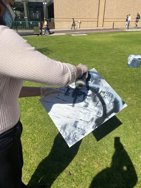 Thomas Readett delivered an artist talk about his painting practice, both on canvas and large scale murals. Readett facilitated a hands-on workshop that responded to elements of his practice which included mark making and high levels of experimentation with oil, acrylic and spray paint. Teachers were asked to bring an object which had sentimental value which they then painted onto a canvas using a monochromatic palette. Readett encouraged teachers to consider the types of marks made for their backgrounds and the connection these had to the depiction of their object.