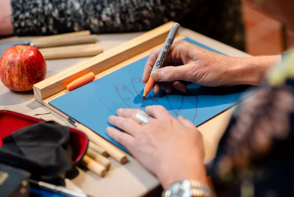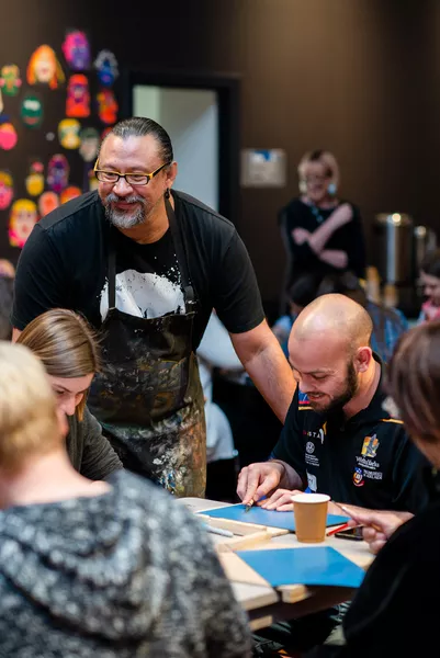 - Mark making and portraiture workshop with Ngarrindjeri artist Thomas Readett