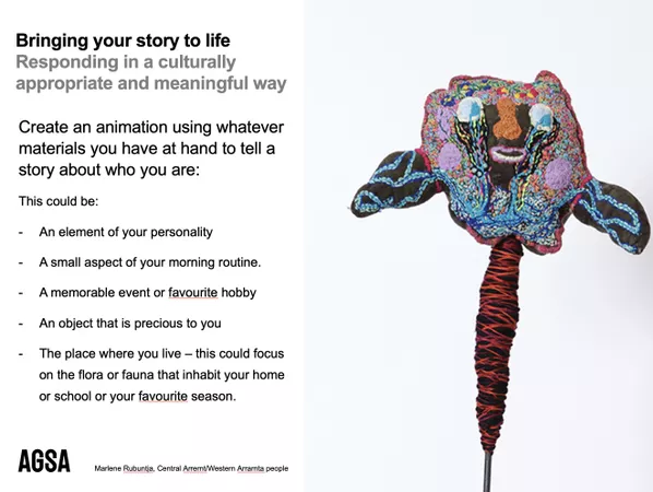 In this online workshop artists from Yarrenyty Arltere and Tangentyere Art Centres provided participants with a tour of the art centre and a behind the scenes look at where the making happens. This session focused on the way relationships between people, culture and country can be conveyed through works of art, including animation. Participants had an opportunity to view rarely seen animations in AGSA's collection and heard from the artists about how they bring their stories to life with the use of static works of art, sound, audio and a camera.