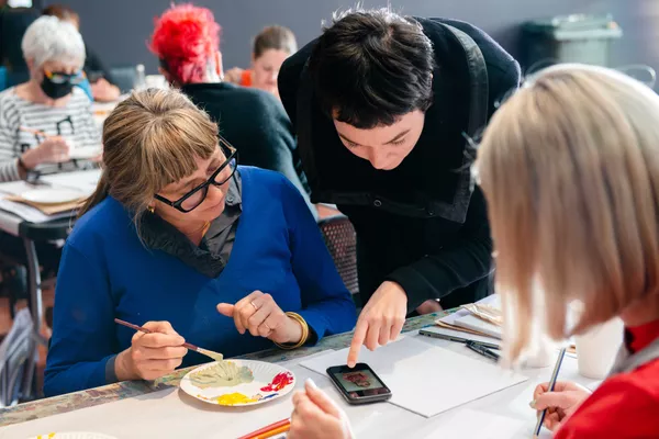 Educators visited the Adelaide Botanic Gardens and took a nature walk with a guide from Kumarninthi, where teachers learnt about the various ways in which native plants are used in Aboriginal culture. This session was followed by an artist workshop with Dylan Mooney where teachers began doing observational drawing in the gardens before heading back to the Gallery for an artist talk and watercolour workshop.