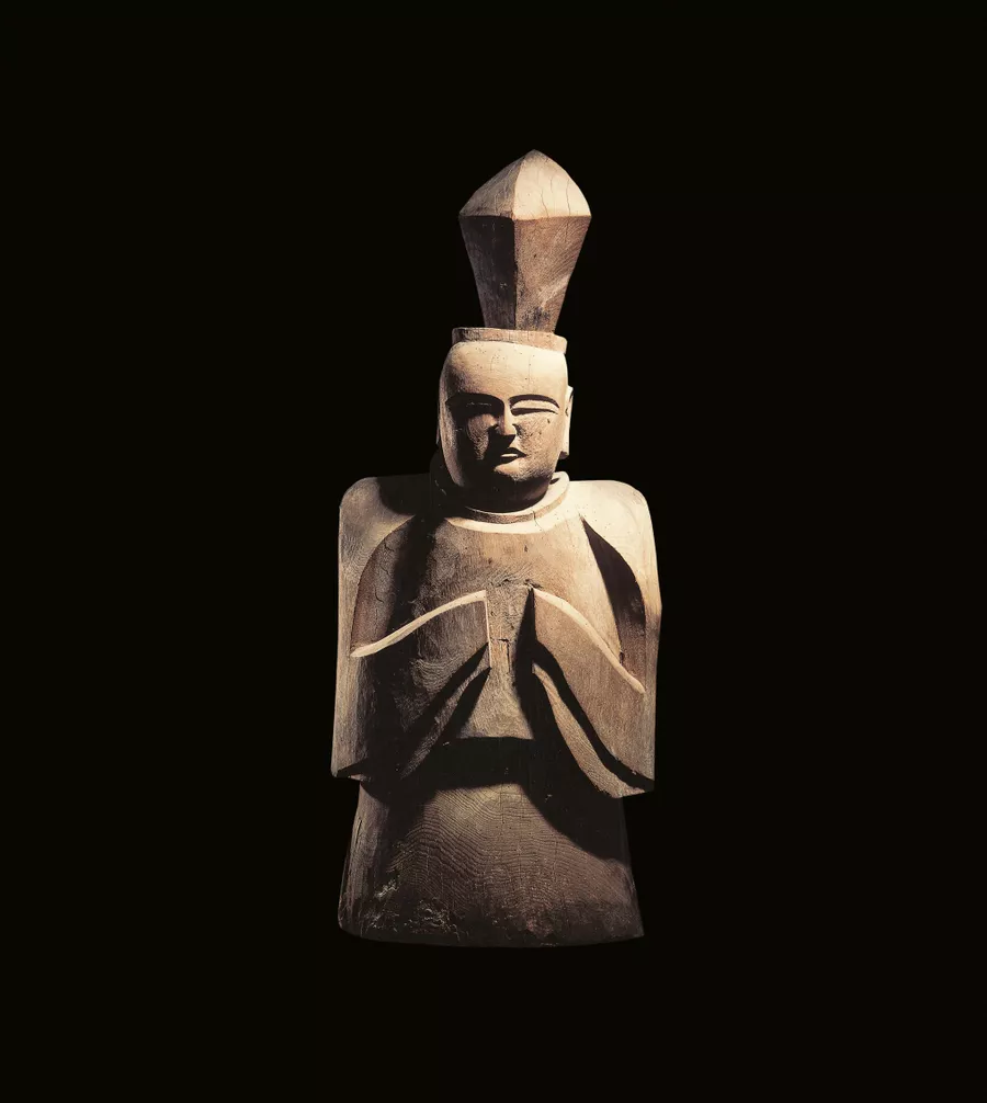 Japan, Male and Female Shinto deities [Shinzo], 15th-16th century, Usa Shrine area, Oita prefecture, Japan, camphor wood, 79.0 cm (male figure), 48.5 cm (female figure); Mrs Mary Overton Gift Fund 1998, Art Gallery of South Australia, Adelaide.