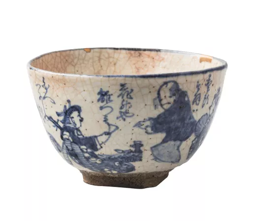In the 14th century simple tea bowls from China were highly valued. However cultivated samurai indulged their aesthetic awareness in the accoutrements (equipment) of tea drinking particularly bowls which were created in a Japanese style and featured asymmetry, uneven ash glaze, repairs and on occasion were given names.