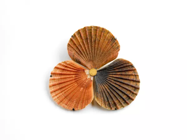 Draw a worm-like or vermicular pattern onto a type of material that you can easily cut around, you could try hard paper or soft plastic. Cover the surface with nail polish to create a shell-like surface and attach a clasp to the back of your object so that it can be used.