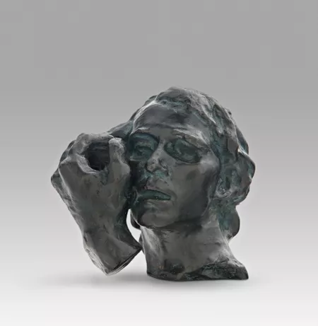 Originally positioned at the very top of his major monument The Gates of Hell, this sculptural group titled The Three Shades demonstrates Rodin’s fondness for repurposing existing works of art, as well as his affinity for repetition and fragmentation. This bronze sculpture is comprised of three identical casts of an earlier statue of Adam, which was influenced by Michelangelo’s fresco The Creation of Adam in Rome’s Sistine Chapel.