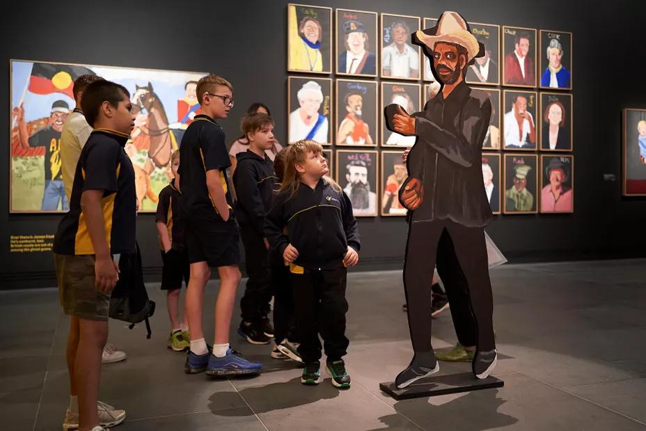 Explore Tarnanthi independently with these self-guided suggestions. The questions and activities emphasise long looking and aim to spark discussions. These prompts will help young visitors make personal connections, instead of prioritising the delivery of contextual information about the works. If you would like to know more about the works of art featured in these trails see our Education Resource page.