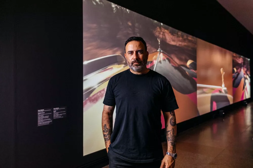 Reko Rennie explores his Aboriginal identity through his use of painting, stenciling, sculpture, installation and film. Although Rennie grew up in Melbourne, his heritage lies with the Kamilaroi people of northern New South Wales. The significance of this heritage was imparted to him by his grandmother Julia, with whom Rennie shared a special relationship. Julia was forcibly removed from her family during the 1920s and enslaved at a pastoral station.