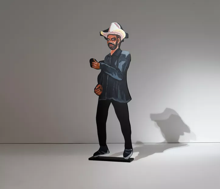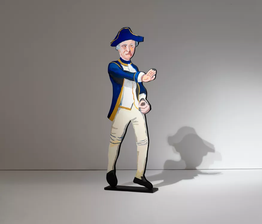 Vincent Namatjira has established himself as a celebrated portraitist and storyteller of Australian history and identity. His paintings offer a wry look at the politics of history, power and leadership from a contemporary Aboriginal perspective. Namatjira often positions himself in this history – out of place and out of time – and in doing so he helps us to reconcile our complex pasts.