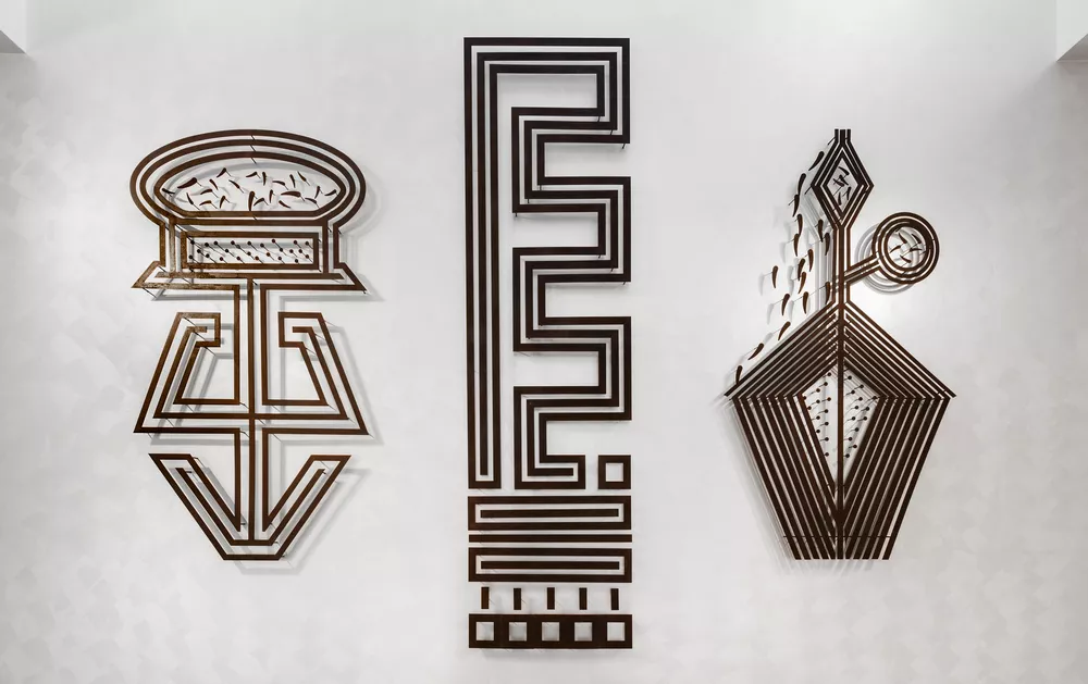 Darrell Sibosado, Bard people, Western Australia, born Port Hedland, Western Australia, 1966, Aalingoon (Rainbow Serpent), 2019, Lombadina, Western Australia, corten steel, 550.0 x 300.0 cm (overall), Acquisition through Tarnanthi: Festival of Contemporary Aboriginal & Torres Strait Islander Art supported by BHP 2020; © Darrell Sibosado, photo: Saul Steed.
