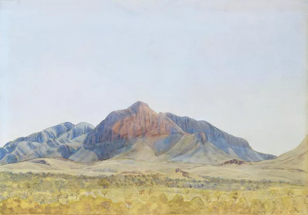Albert Namatjira, Western Aranda people, Northern Territory, born Ntaria (Hermannsburg), Northern Territory 1902, died Mparntwe (Alice Springs), Northern Territory 1959, (MacDonnell Ranges), 1950s, Northern Territory, watercolour on paper, 25.7 x 36.0 cm (sight); Bequest of Marjory Edwards 2005, Art Gallery of South Australia, Adelaide, © Namatjira Legacy Trust/Copyright Agency.