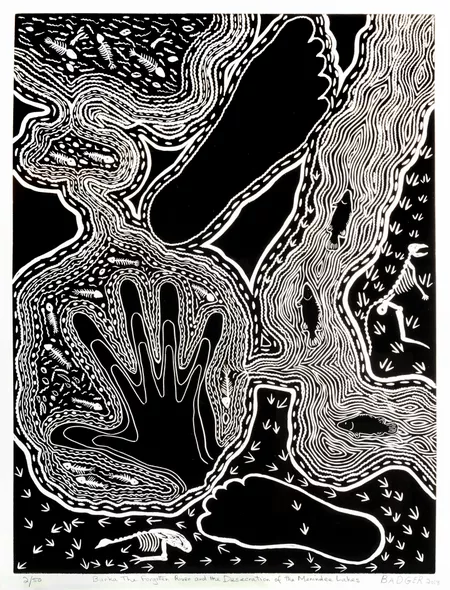 - Investigate work by Nici Cumpston, who is of Afghan, English, Irish and Barkandji heritage. Her work also responds to the Murray-Darling crisis. How have both artists communicated their concerns? Find out more about an environmental issue in your local area that you are passionate about. Create a work of art in response to this issue.
