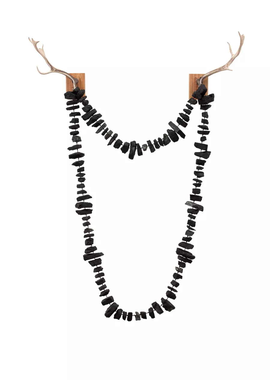Julie Gough, Trawlwoolway people, Lutruwita (Tasmania), born Naarm (Melbourne) 1965, Malahide, 2008, Nipaluna (Hobart), coal, antlers, 200.0 x 133.0 x 35.0 cm; Lillemor Andersen Bequest Fund 2008, Art Gallery of South Australia, Adelaide, © Julie Gough.