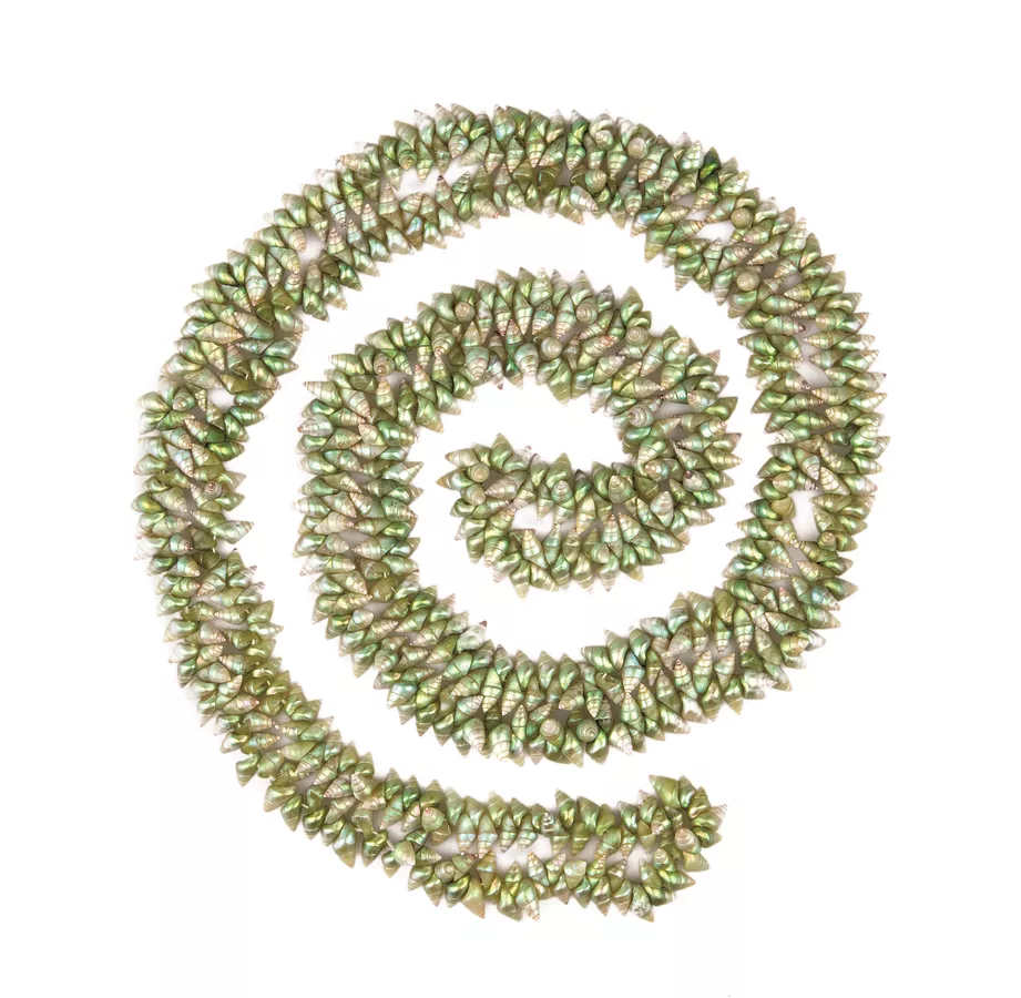 Lola Greeno, Trawlwoolway people, Lutruwita (Tasmania), born truwana (Cape Barren Island), lutruwita (Tasmania) 1946, Necklace, 2001, Launceston, Lutruwita (Tasmania), maireener shells, 206.0 cm (length); Rhianon Vernon-Roberts Memorial Collection 2001, Art Gallery of South Australia, Adelaide, Courtesy the artist.