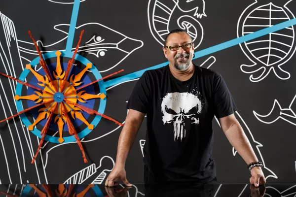 “Growing up on Waiben (Thursday Island) in the Torres Strait in a family of fisherfolk whose Roman Catholic faith exists in synergy with traditional Maluyligal and Wuthathi spirituality, my creations are seemingly incongruous concoctions where many motifs and characters are co-opted into the spirit world of the Islander imagination, which are then intertwined with historical narrative, personal history and humour”.