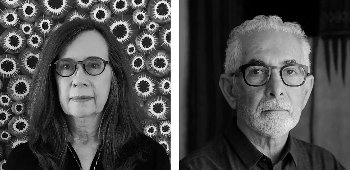 Leigh Robb and Bernadette Klavins discuss works of art in the exhibition 'Free/State'