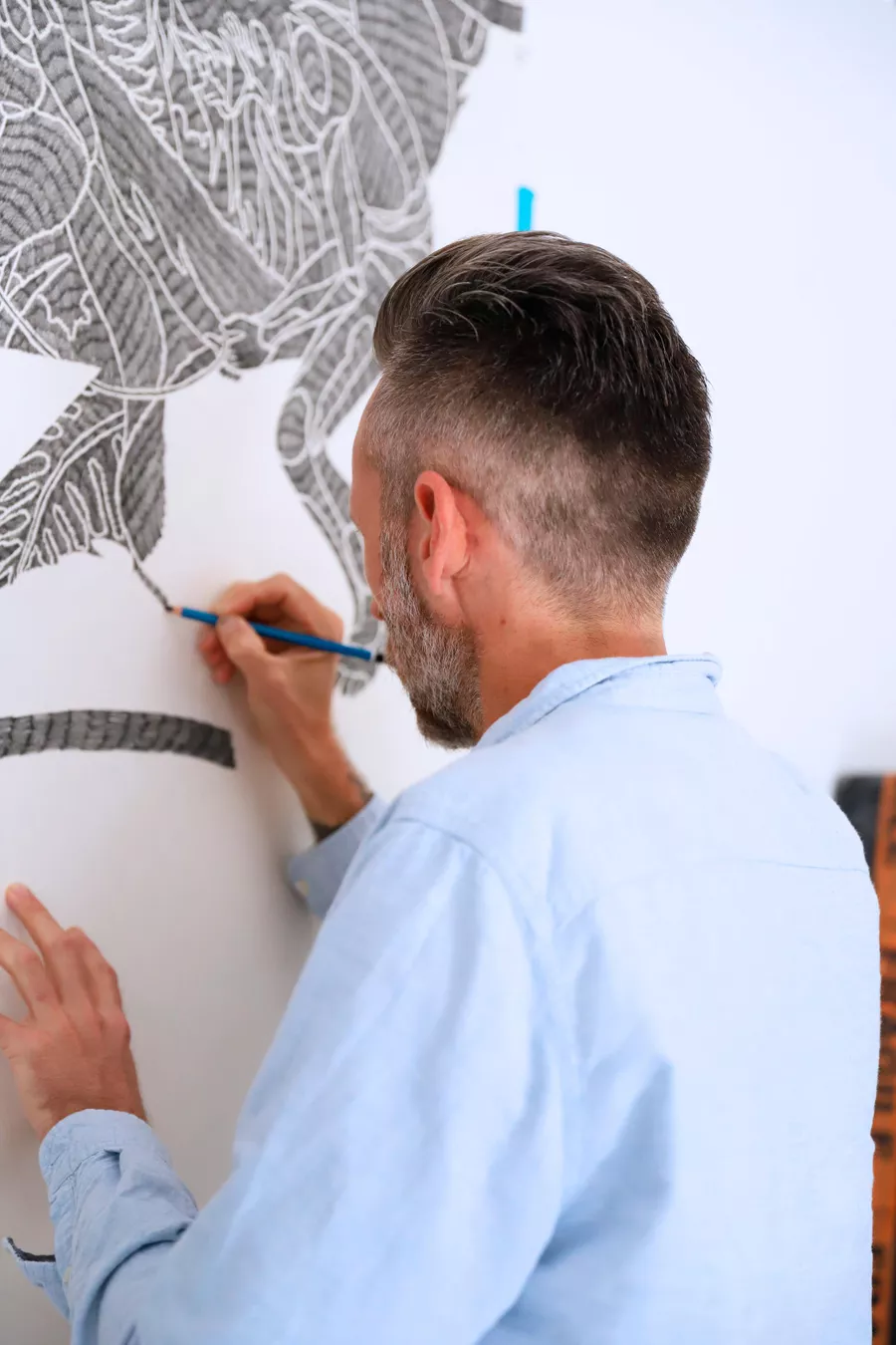 Born on the Sunshine Coast, Queensland, in 1977, Laith McGregor is an Australian artist currently living and working in Byron Bay. McGregor majored in painting in 2007 at the Victorian College of the Arts, Melbourne, but it wasn’t until after he graduated that drawing took a central role in his practice. Known for producing portraits using the humble biro, large-scale durational drawings, as well as sculptural installations featuring unconventional drawing mediums and surfaces, McGregor considers drawing a very direct and fundamentally human practice. “The line as a symbolic gesture dates back to our primitive origins and filters into the fabric of our everyday lives… It’s a primal instinct, used to map, guide, express and converse.”[1]