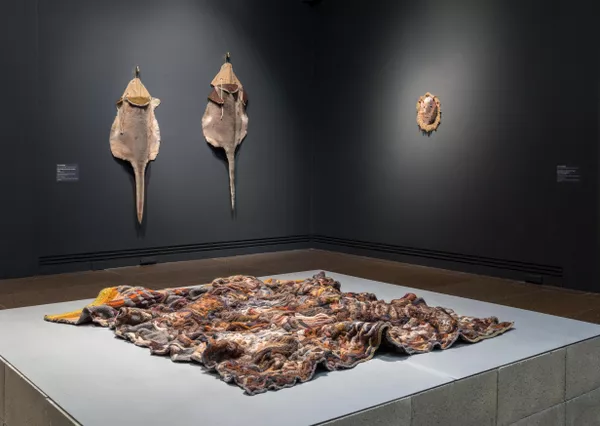 Look at Waters’ work in Free/State. What types of knotting techniques has Waters used? Sketch or photograph these details. Investigate the history of knotting. What interesting techniques did you discover? Experiment creating a range of different knots with string, jute or yarn. Create a work of art using knotting techniques.