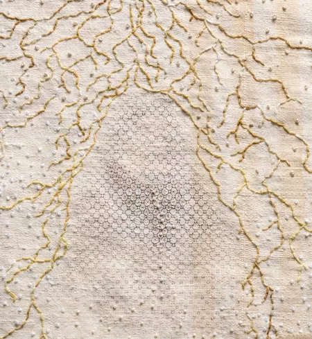 Born in Murray Bridge, South Australia in 1979, Sera Waters is an artist, writer and academic currently living in Adelaide. As the descendant of five generations of South Australian settler colonists – her forebears came to Australia from England, Scotland, Ireland and Germany – Waters draws on the narratives of her familial history to redress gaps and silences within Australian history. Working predominantly in textiles, fibres and sculpture, her meticulous skill in hand-embroidery and domestic hand-crafts was propelled by an opportunity to study Western European stitching techniques at the Royal School of Needlework in England, in 2006. Waters returned to Adelaide armed with the material vocabulary of her matrilineal ancestors – the skills her great-grandmother and great-great-grandmother would have regularly practised – as a means to examine “the threads that have been inherited from the past, to intentionally reset their course.”[1]