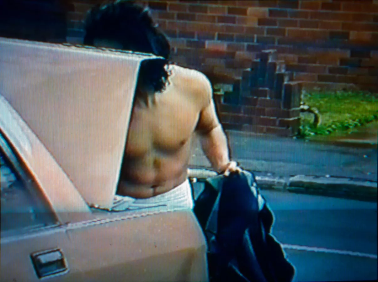 Heaven (1997) is a twenty-eight minute documentary-style film where Moffatt, and six of her women friends, filmed short sequences of male surfers in various stages of undress. Shot on 8mm video, a pre-digital technology, the surfers were captured changing in and out of their wetsuits in car parks surrounding Sydney’s Bondi and Avalon beaches. The montaged scenes play to a surveillance style hand-held aesthetic. They offer a voyeuristic glimpse, through car windows and from across the street, into the naturalised yet highly gendered ritual of exhibitionism typically seen at the beach, a public act of nudity that is almost exclusively performed by men. As a charged location in the national psyche, Heaven captures the machismo of the beach and surf culture in Australia at the time.