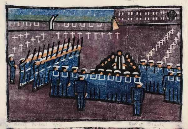 It is most likely that Black first learnt linocut printing from Australian artist Thea Proctor (1879-1966) around 1926. Certainly her very early prints show the influence of Proctor. When Black travelled to London in 1927 she immediately began studies at the newly-opened Grosvenor School of Modern Art where, under Claude Flight (1881-1955), she took classes in lino-cutting and wood engraving. At this time the linocut was seen as a very progressive medium, closely aligned with modernism. And as Flight asserted, it was an inexpensive, and thus democratic but nonetheless decidedly expressive medium. This would have appealed to Black. In fact Black was influenced by Flight and produced some works that clearly demonstrated Flight’s ideas. Flight used examples of Black’s linocuts as teaching tools.