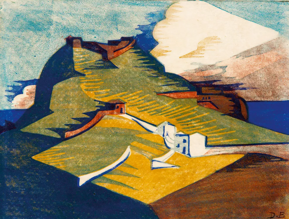 Dorrit Black, born Adelaide, South Australia 23 December 1891, died Adelaide, South Australia 1951, The Castle, Taormina, c.1928-29, Paris, colour linocut on cream wove paper, 20.5 x 26.7 cm (image), 24.1 x 30.9 cm (sheet); Bequest of Shirley Cameron Wilson 2003, Art Gallery of South Australia, Adelaide.