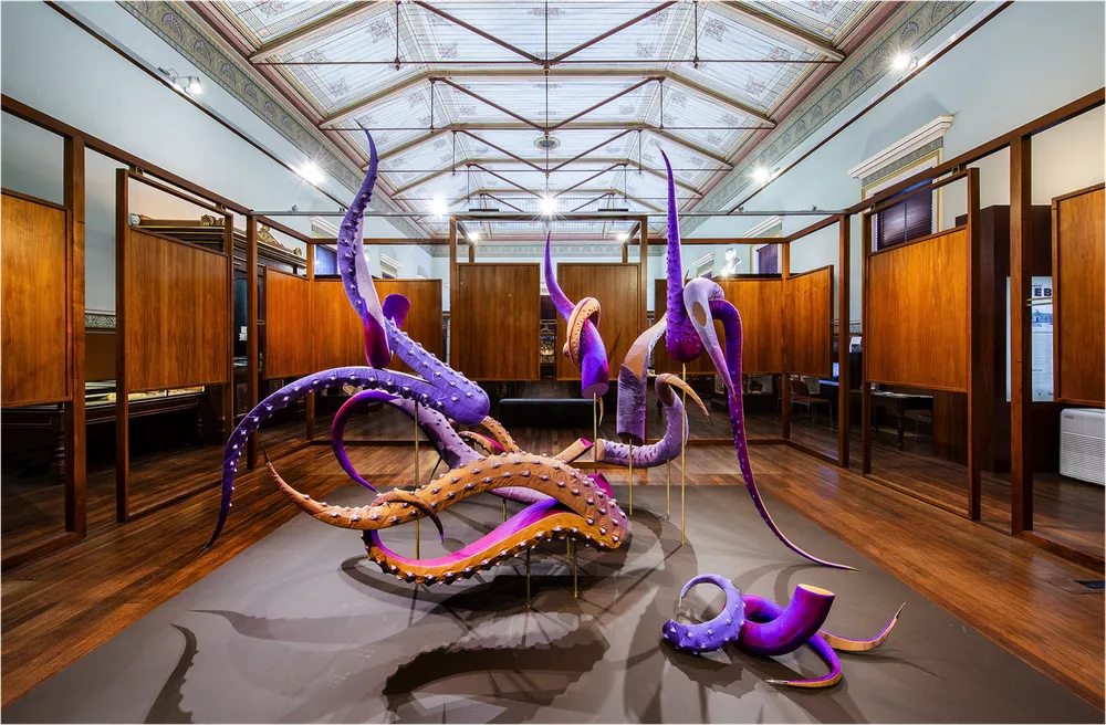installation view: 2020 Adelaide Biennial of Australian Art: Monster Theatres featuring Beatrice by Julia Robinson, Santos Museum of Economic Botany, Adelaide; photo: Saul Steed.