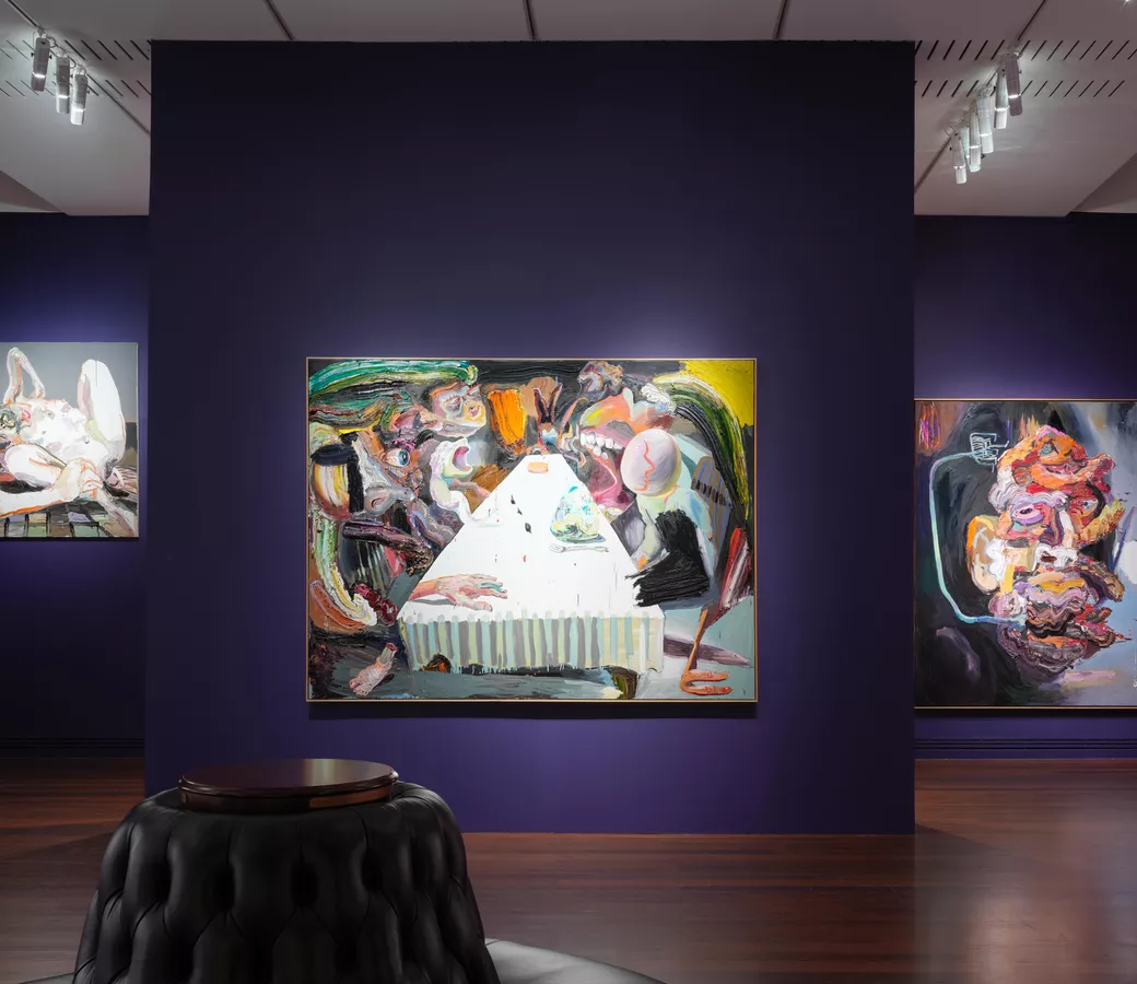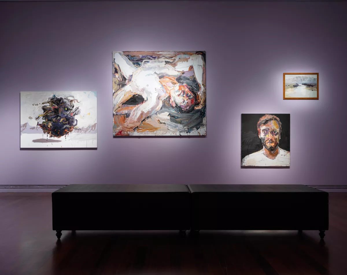 Installation view: Quilty featuring The Shower, The Last Supper and The Goldilocks Zone (Banksia Man) by Ben Quilty, Art Gallery of South Australia, Adelaide, 2019; photo: Grant Hancock.