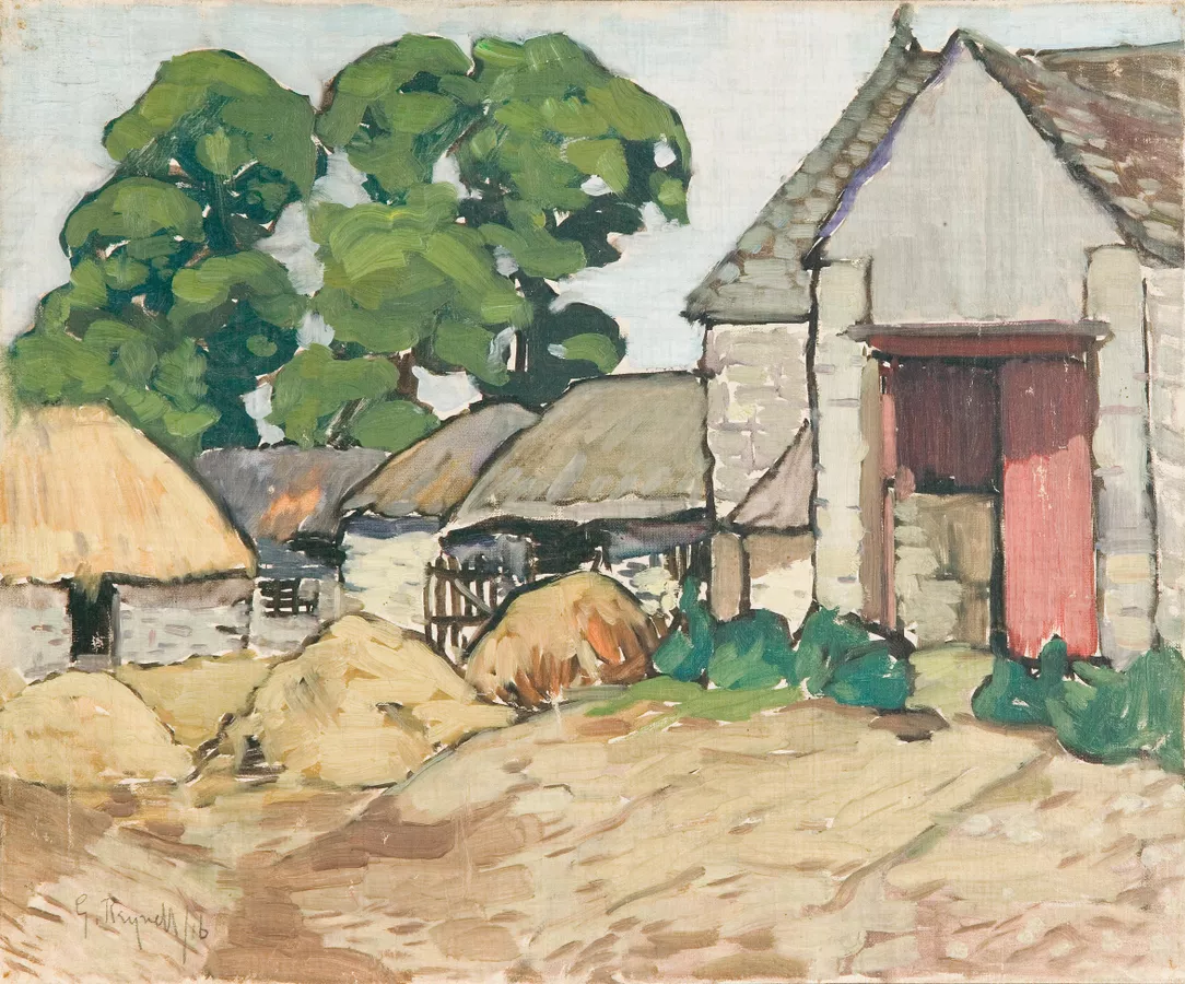 During 1914 and 1915 Reynell embraced Post-Impressionism which included the boldly coloured paintings of simplified forms. While in Ireland Reynell chose to concentrate on painting scenes of rural life and in England the picturesque buildings of the Cotswold’s.