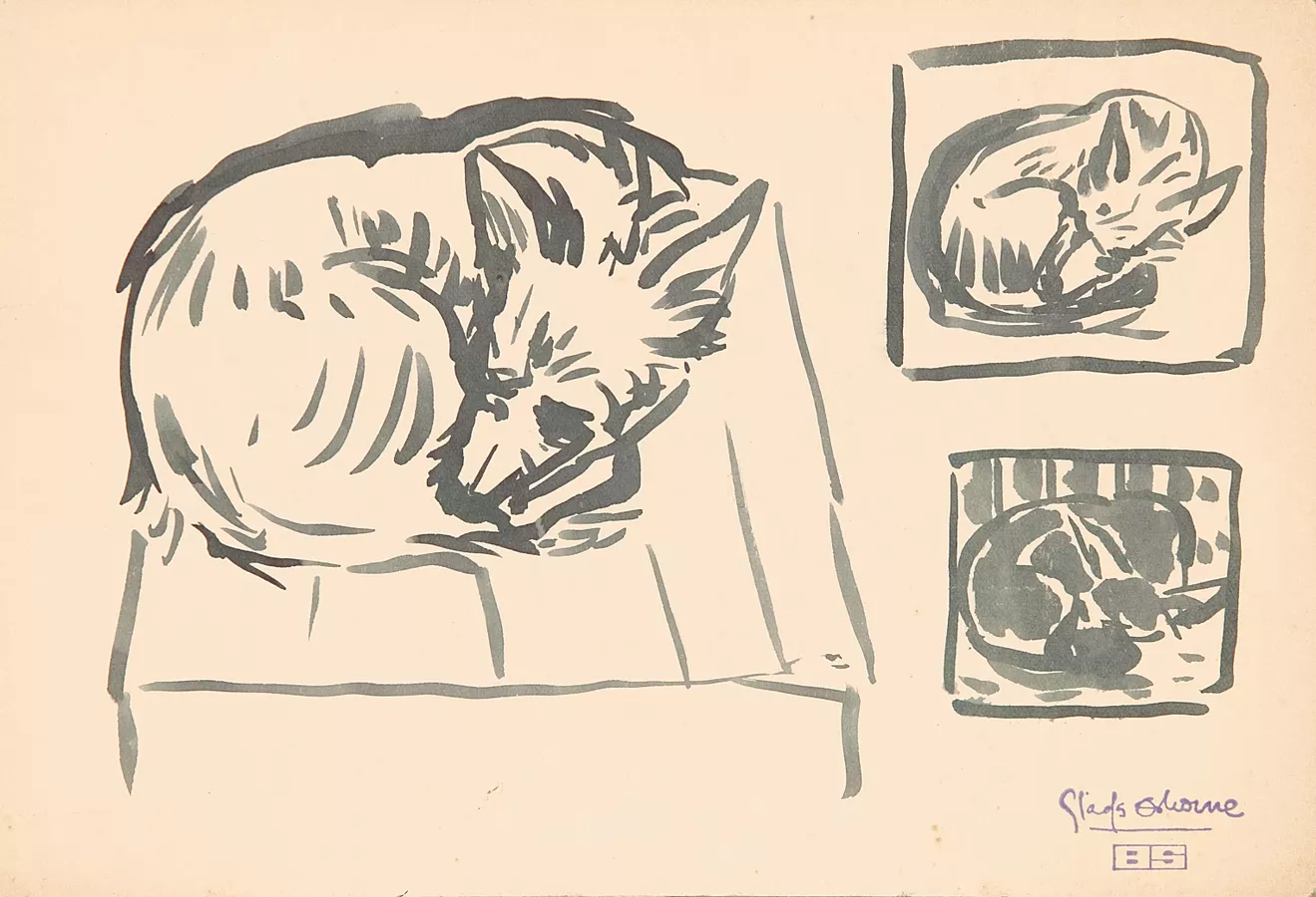 Gladys Reynell, born Glenelg, South Australia 4 September 1881, died Melbourne 16 November 1956, Study of a sleeping dog, 1914-18, Britain, ink on card, 15.6 x 22.9 cm (sheet); Ellen Christensen Bequest Fund 2004, Art Gallery of South Australia, Adelaide, © estate of Gladys Reynell.