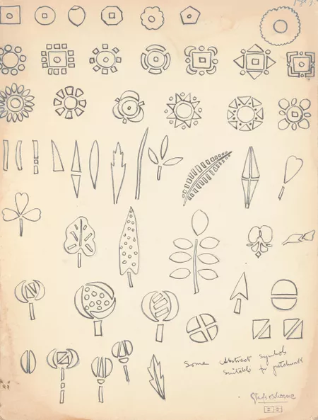 Gladys Reynell, born Glenelg, South Australia 4 September 1881, died Melbourne 16 November 1956, Cushion designs for patchwork, c.1934-38, Curdie Vale, Victoria, watercolour, ink, pencil on card, 30.5 x 23.0 cm (sheet); Ellen Christensen Bequest Fund 2004, Art Gallery of South Australia, Adelaide, © estate of Gladys Reynell.