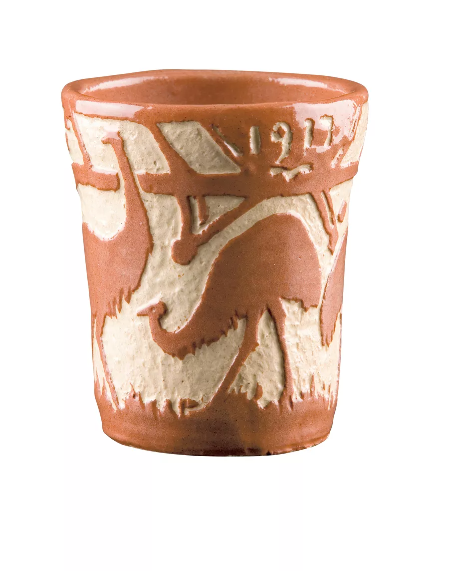 Gladys Reynell, born Glenelg, South Australia 4 September 1881, died Melbourne 16 November 1956, Emu beaker, 1917, London, earthenware with sgraffito decoration, 10.0 x 8.7 cm (diam.); South Australian Government Grant assisted by the Crafts Board of the Australia Council 1980, Art Gallery of South Australia, Adelaide, © Art Gallery of South Australia.