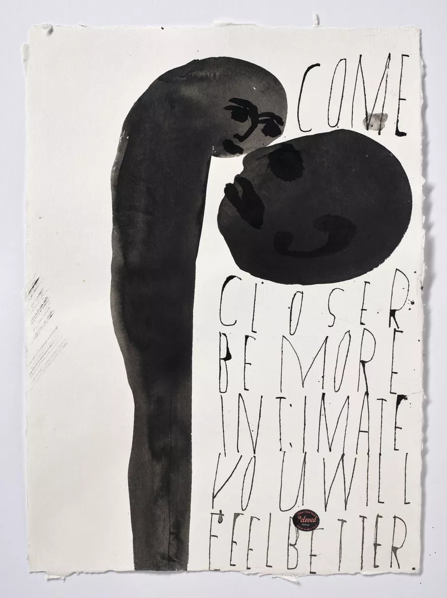 In the multifarious installation Last night on Earth (2024), drawings, paintings and sculptures sit in spatial and poetic relationships to one another. Vast painterly pools are inverted in the glass globes of The Moth (2023) which are, in turn, echoed in the penetrating vision of Charon (2023). As a physical object that portrays a void, Charon is a silhouette–a recurring motif across Swann’s work that embodies both presence and absence, and positive and negative space. At nearly three metres wide, The long rock (2018) is another hybrid curiosity. Neither animal nor human, featuring an upholstered torso and bowing legs, it materialises a yearning of ‘wanting to stay, wanting to go’.[1] Swann not only moves easily between mediums, but the objects and images themselves exist between states. They delve intuitively into the unknown: ‘The recognition that we are mysterious to ourselves is the driving force for me as an artist.’[2]