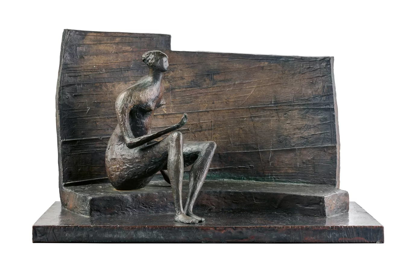 Henry Moore, born Castleford, Yorkshire, Britain 1898, died Much Hadham, Hertfordshire, Britain 1986, Seated figure against a curved wall, 1956, London, bronze, 55.0 x 92.0 x 53.0 cm; Morgan Thomas Bequest Fund 1958, Art Gallery of South Australia, Adelaide, © The Henry Moore Foundation www.henry-moore.org/DACS/Copyrightt Agency.