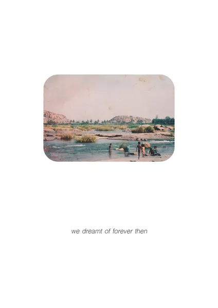 For Inner Sanctum, Money presents two bodies of work, united by their interventional style. All Our Seasons (2023-24), first presented at the Ace Hotel in Sydney, is a suite of 52 A2-sized digital prints. Each ‘card’ in Money’s deck of images (representing perhaps weeks of the year or a deck of playing cards) features the reproduction of an enigmatic photograph, drawn from the artist’s personal albums and captioned with an open-ended poetic phrase: ‘together where the world ends’, ‘strange joys and distant pleasures’ or ‘caught in gentle light’. The images themselves are equally open-ended: blurred marigolds at a flower market, an empty side of the road scene, a domestic still life basking in long golden afternoon light. Largely devoid of any signifiers or recognisable people, who might otherwise tie down the meaning of the images, Money’s images could be anytime and anyplace.